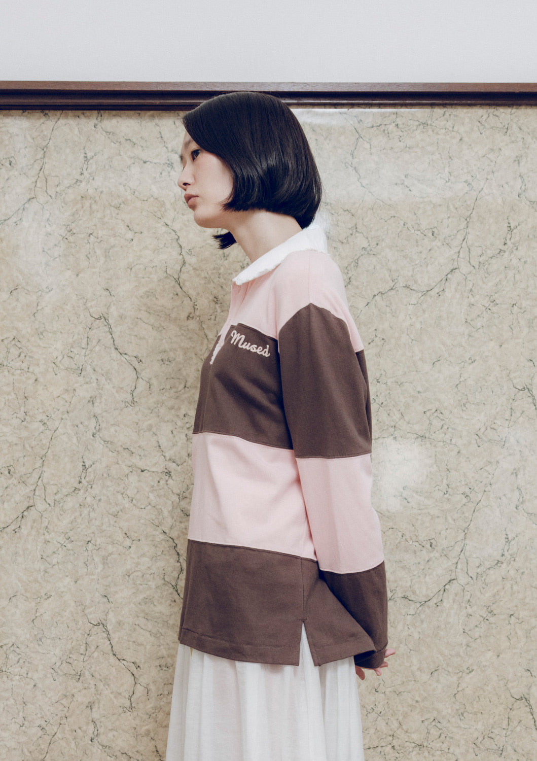 しっかりとした素材感の、カラー配色のパッチワークが際立つラグビーティーシャツです。