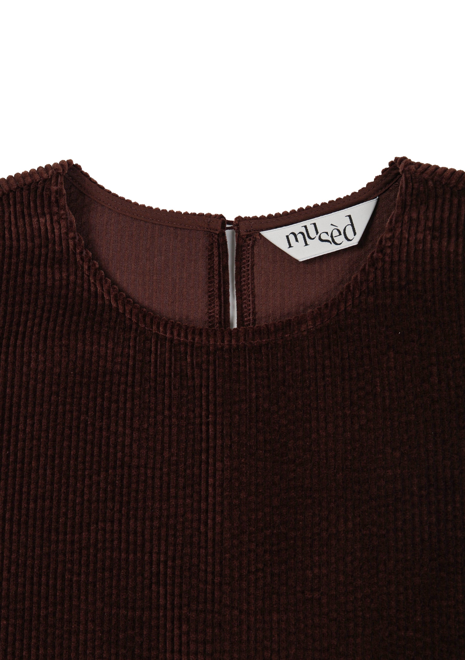 ブラウンのコーデュロイ生地は温かみのある柔らかな質感で、季節感のあるムードを演出します。