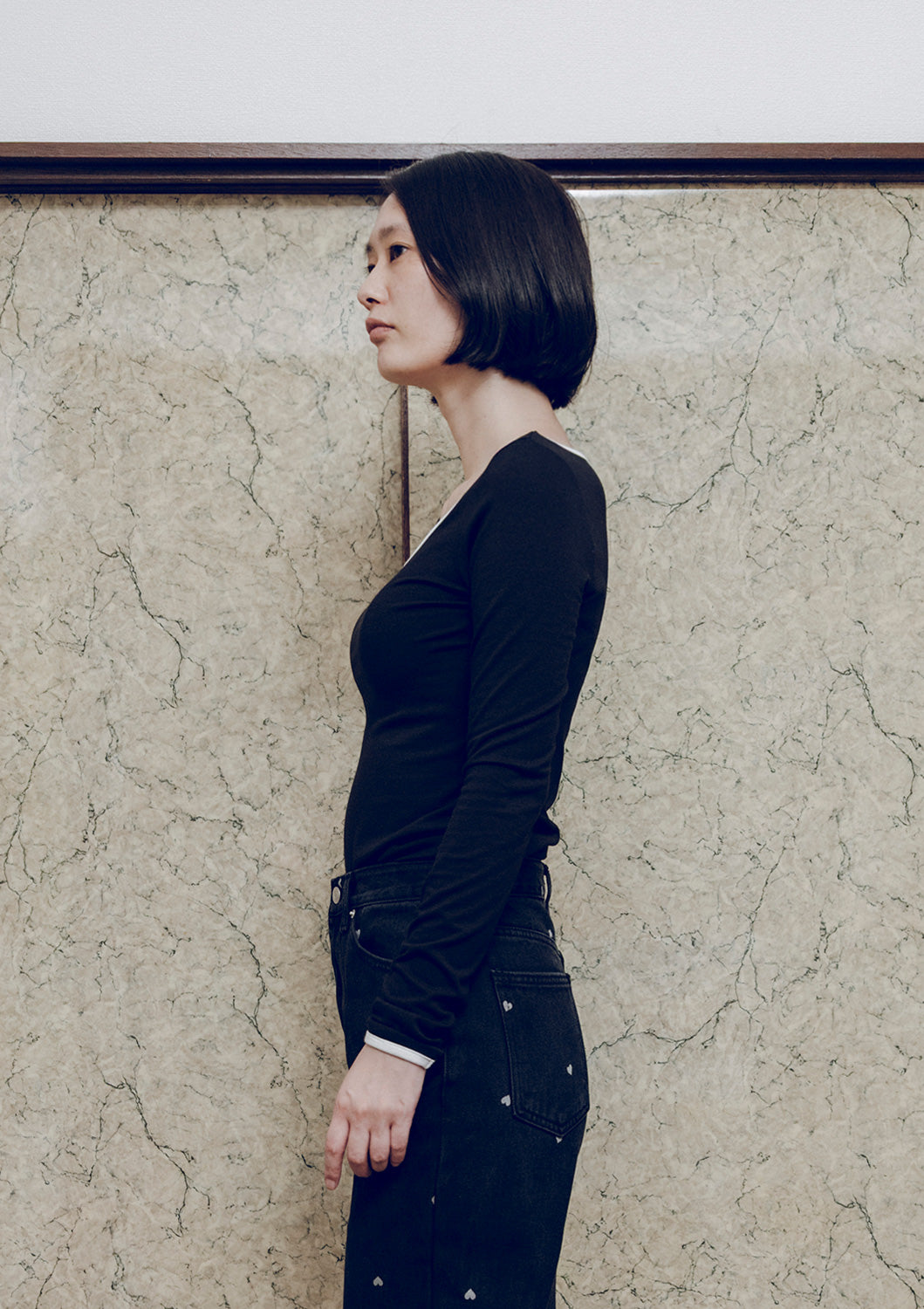 ネック下にはMUSÉDロゴの刺繍をあしらい、繊細さをプラス。どんなスタイルにも気軽に合わせやすい一着です。