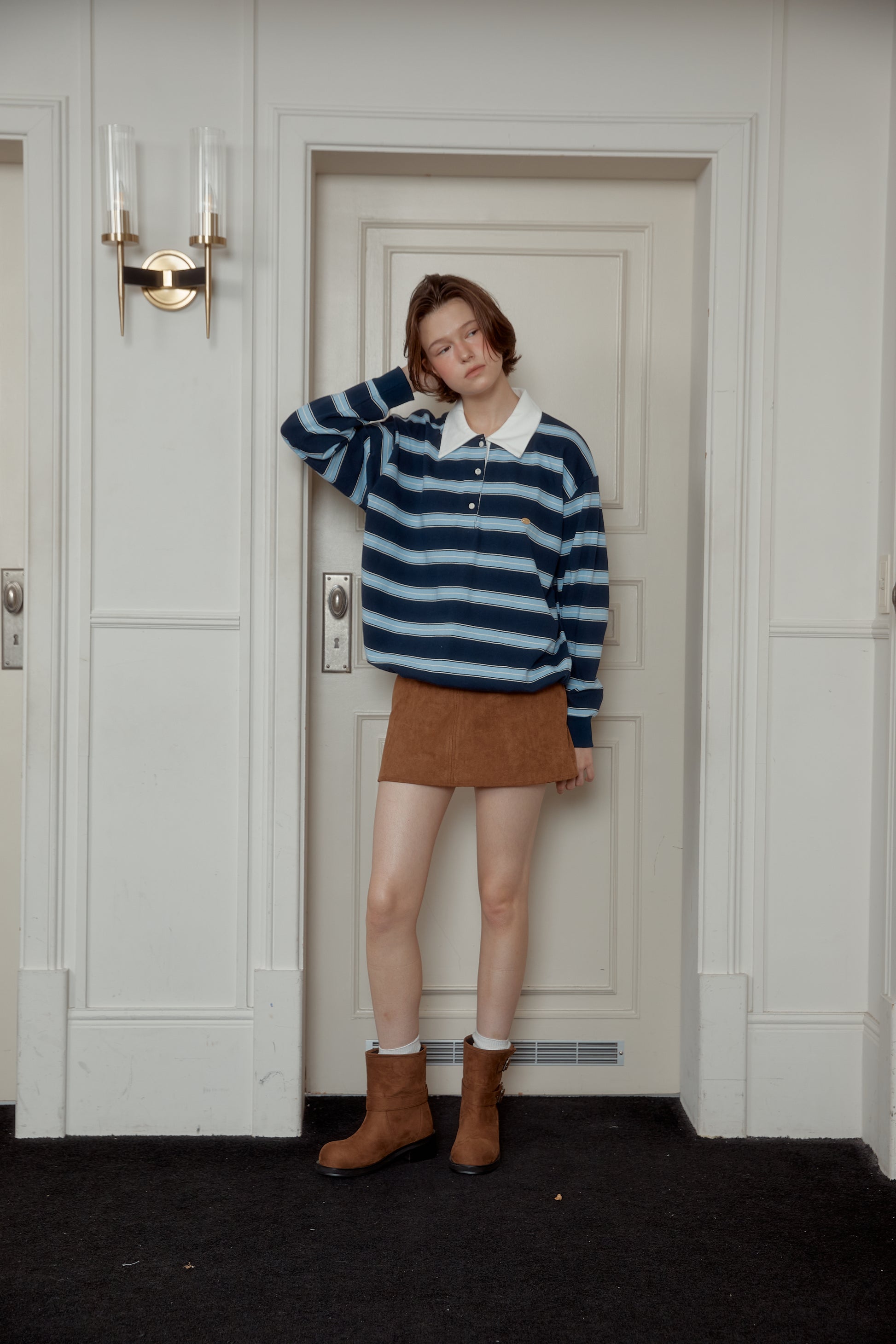 NEW STRIPE STRING RUGBY SWEATSHIRTS - Navy