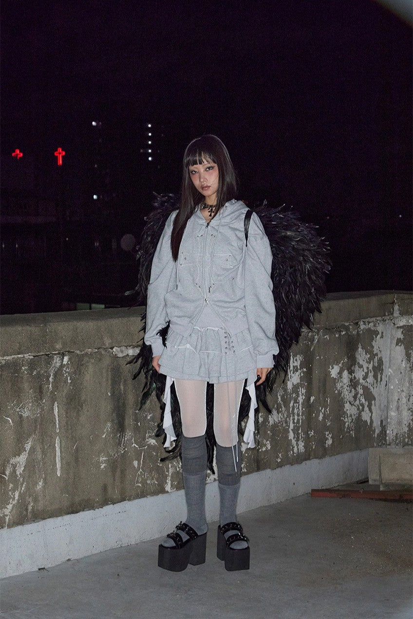 コットンスウェット素材で仕立てた 3段ティアードミニスカート。