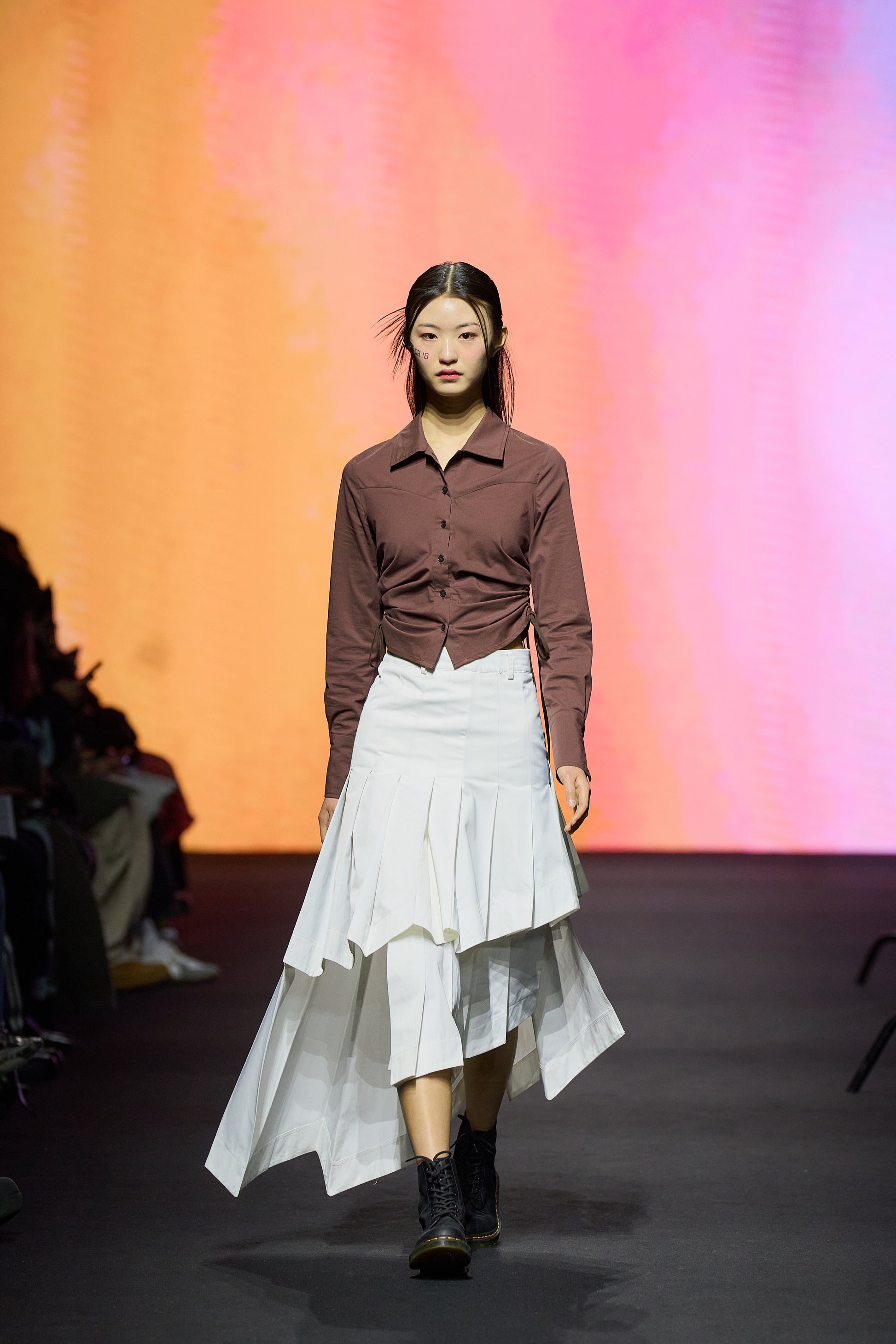 サイドに施したドローストリングシャーリングが、シルエットに女性らしいニュアンスをプラス。